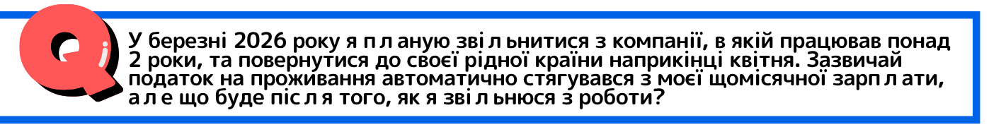 Наш Центр створив буклет, заснований на інформації з Бюро правових питань, у якому пояснюється, як сплачувати податок на проживання після звільнення з роботи, а також чи потрібно продовжувати сплачувати податок на проживання навіть після повернення додому. Рекомендуємо до перегляду!
