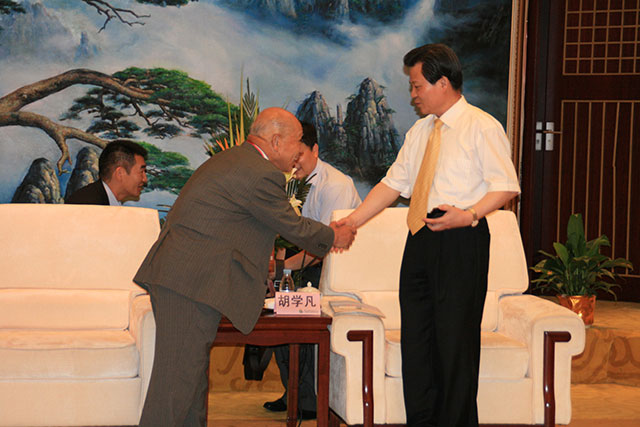 署缔结协议之后,汪副市长和乙部町的寺岛光一郎町长紧紧握手,并约定要通过加强对缘桂树和重欢树的保护,增进民间层面的友好交流并为两国的环保事业作出贡献。