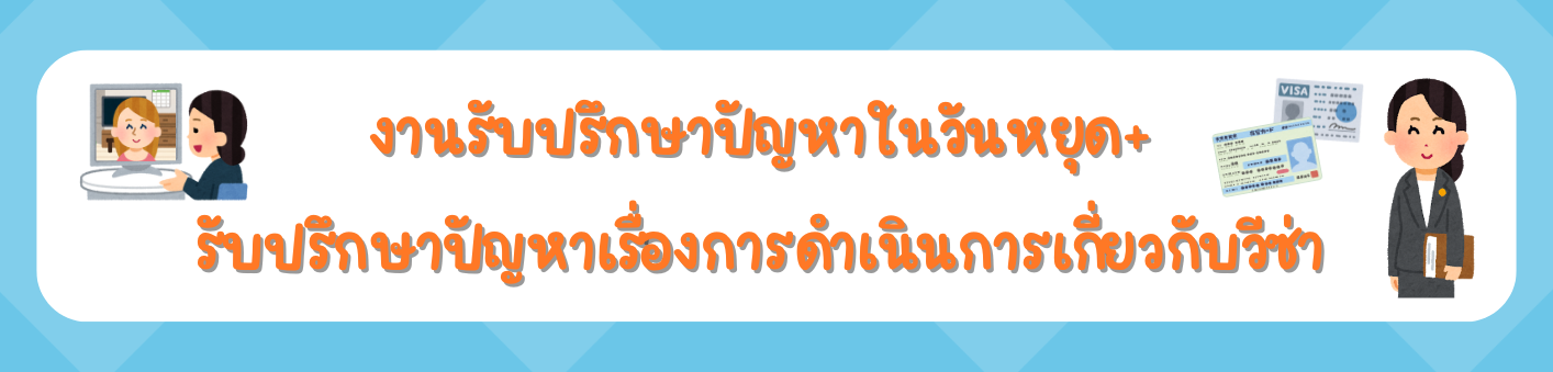 ”งานรับปรึกษาปัญหาในวันหยุด+ปรึกษาปัญหาเกี่ยวกับขั้นตอนการตรวจคนเข้าเมือง”