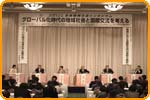 北方圏センター25周年記念全道国際交流シンポジウム グローバル化時代の地域社会と国際交流を考える 平成15年11月18日、「グローバル化時代の地域社会と国際交流を考える」をテーマに、全道国際交流シンポジウムが開催され、地域における国際交流・協力活動の意義や役割、推進のあり方、直面する課題への対応などについて学び合い、意見交換を行いました。 |