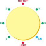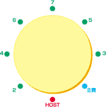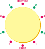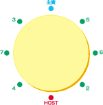 丸テーブルで食事をする時の座り方はどうなっているか。