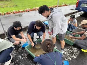 初日は、ピリカ旧石器資料館にて、ピリカ遺跡出土の石を模したストラップづくりや砂金彫り体験を行いました。夜はキャンプファイヤーで交流しました。