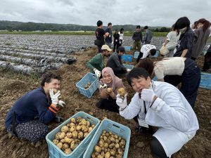 翌日は、地元の農家を訪問してじゃがいも収穫体験をしたり、茶道会の方々との交流などを行いました。